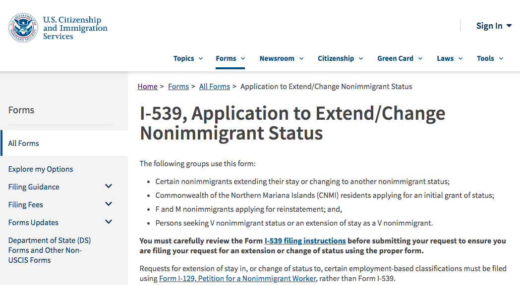 USCIS官网I-539表格填写链接:》》》点击这里《《《