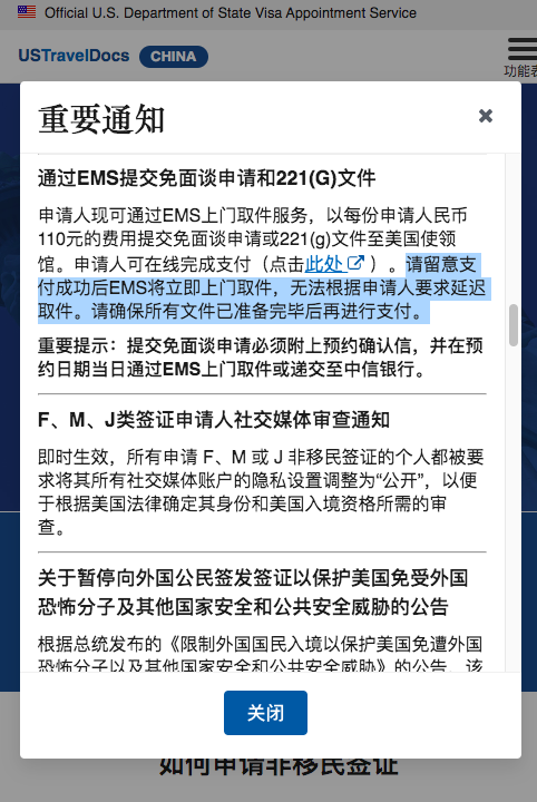 - 材料准备好后,预约当天通过EMS上门取件服务提交材料,每份申请收取110元快递费。(按实际人数收)