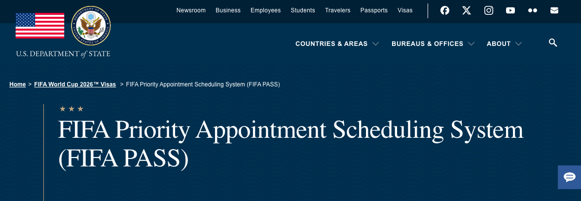 2026世界杯进入倒计时,史上第一次横跨美国、加拿大、墨西哥三国联办,足迹遍布16座城市!美国国务院联合国际足联官宣:FIFA PASS世界杯专属美签优先预约系统已正式启动!
