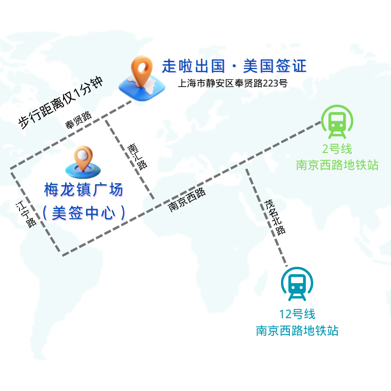 走啦美签门店距离美国驻上海总领事馆东仅20米,步行即达。